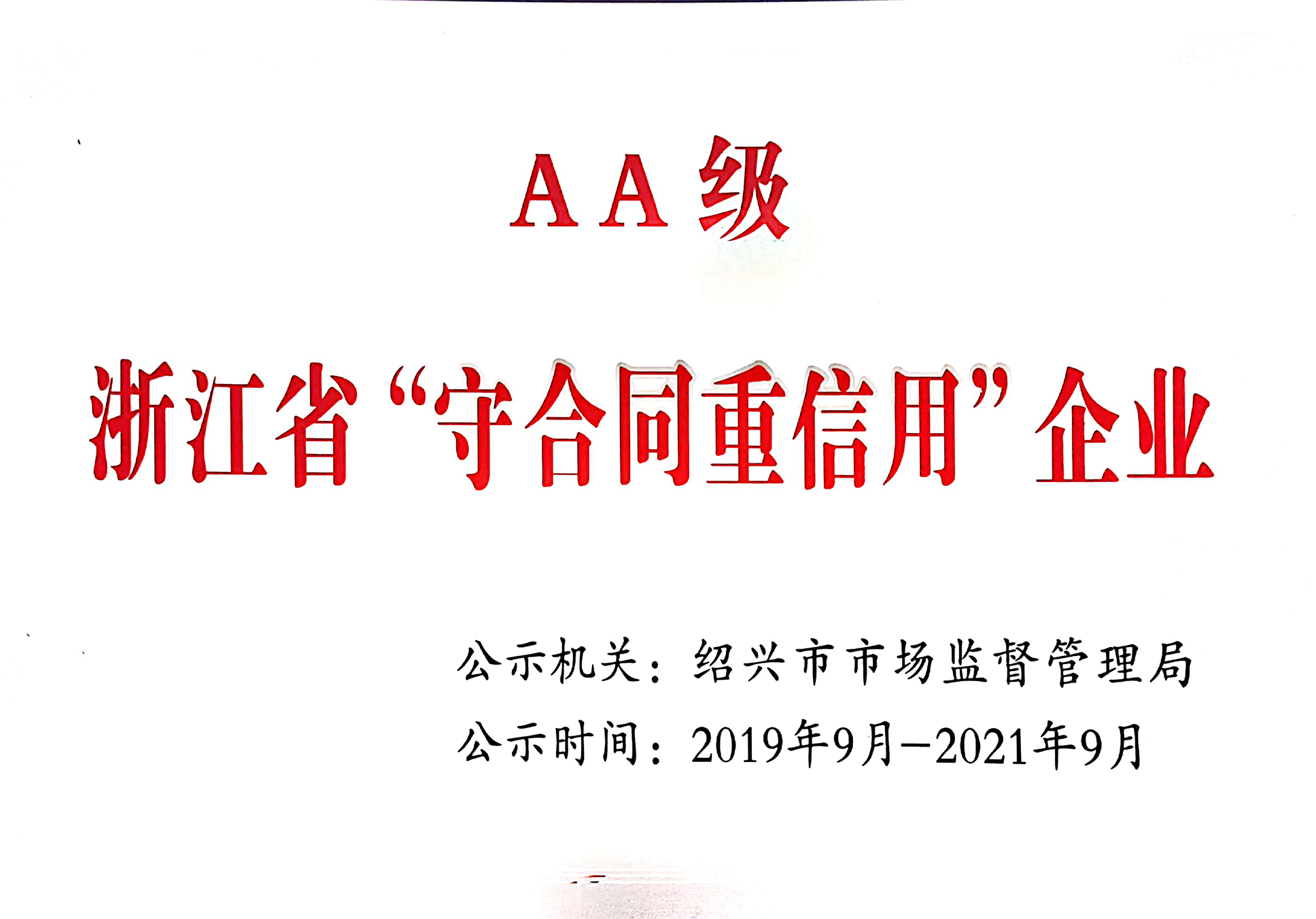 Предприятие "Выполнение контрактов и сохранение кредита" провинции Чжэцзян уровня AA